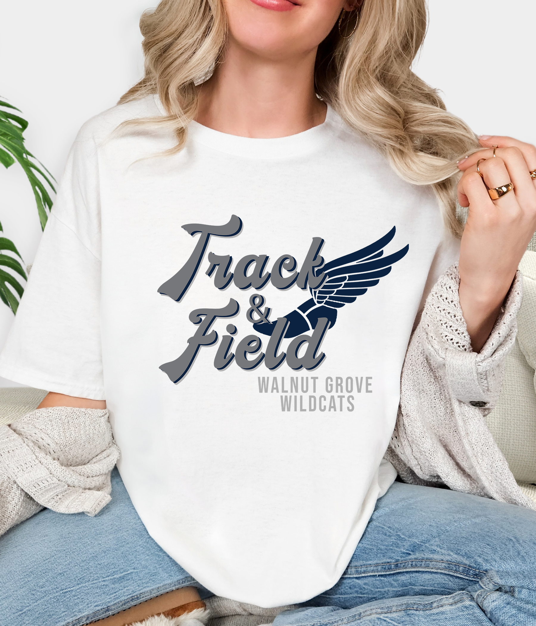 Show your school spirit with this fun Walnut Grove track and field shirt! This is a Comfort Colors white tee